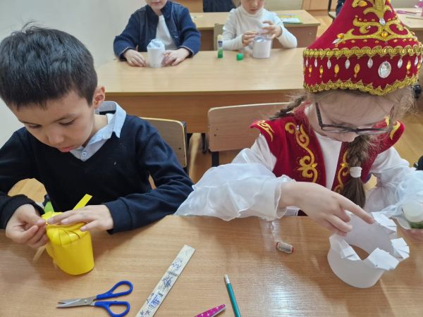 Учащиеся 1"В" класса подготовили поделки своими руками к празднику Наурыз.