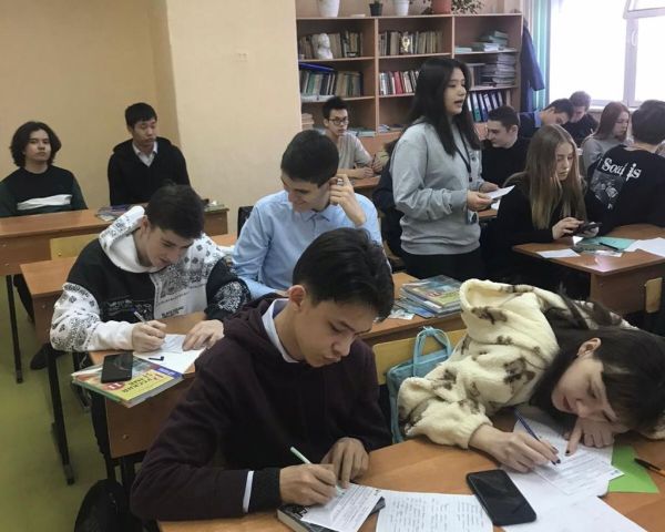 24.02.2023 г. В целях профориентационной работы преподаватель Университетеа Международного Бизнеса имени Кенжегали Сагадиева провела беседу с учащимися 11-ых классов.