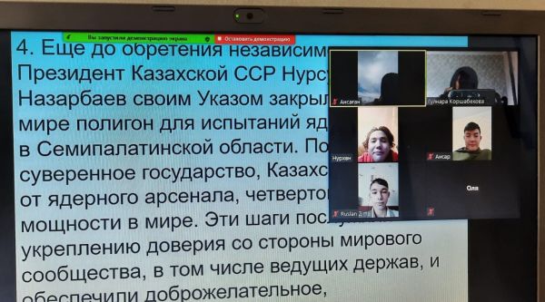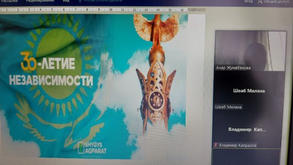15.09.2021 г. В 10Б классе в онлайн режиме проведен классный час на тему: «Достижения Независимости». Классный руководитель: Коршабекова Г.А.