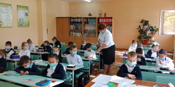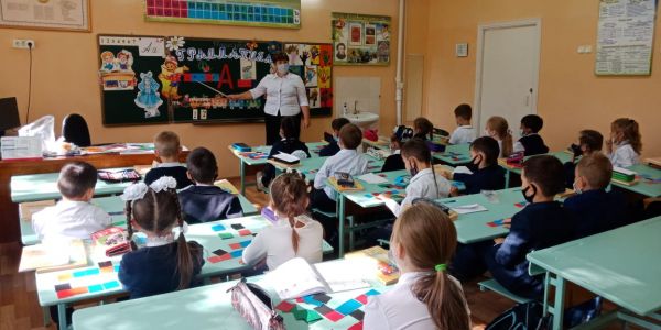 Ученики 1"Б" класса знакомятся с первой буквой алфавита, буквой "А".