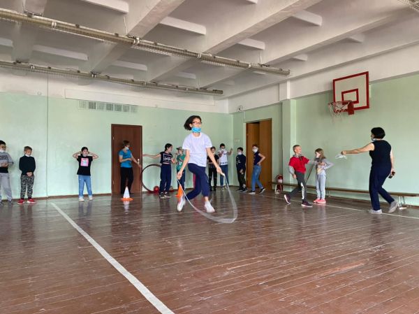 Лагерь "Достық". 6-день. Шестой день летнего лагеря "Достық" дети как всегда начали с зарядки. Затем в спортивном зале проходили марафон.