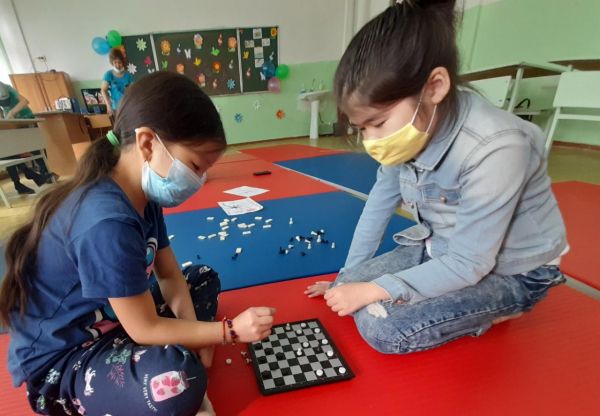 Лагерь "Достық". 4-день. Четвёртый день летнего лагеря "Достық" дети начали с зарядки. Затем некоторые дети в спортзале играли в спортивные игры. Некоторые рисовали, делали ап…