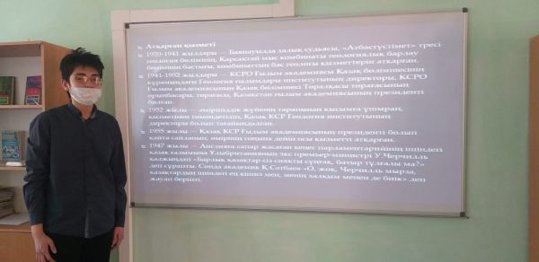 15.04.21 в школе прошла научная практическая конференция. В защите мини проектов работа ученика 11А класса Тілеуберген Данияр на тему "Қаныш және Жезқазған" была признана лучшим.