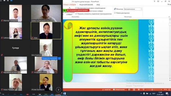 21 января 2021 года в рамках недели читательской грамотности прошла конференция на тему «Қаңтарда туған қаламгерлер». Приняли участие учащиеся 10Ә класса, мероприятие прошло в формате ZO…