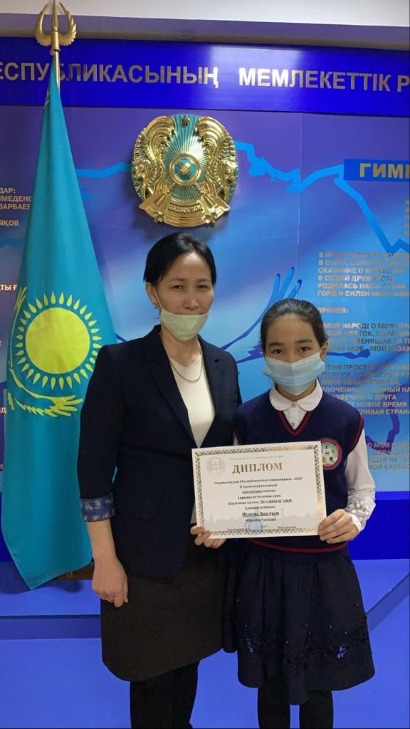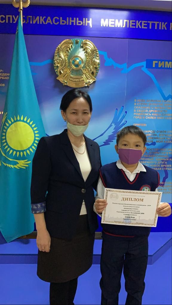 Поздравляем учеников 2”А” класса с победой II Республиканского конкурса рисунков, фотографий, эссе "Туған өлкем", диплом І степени Күнтуған Нұрдос, Сайнова Аружан и дипло…