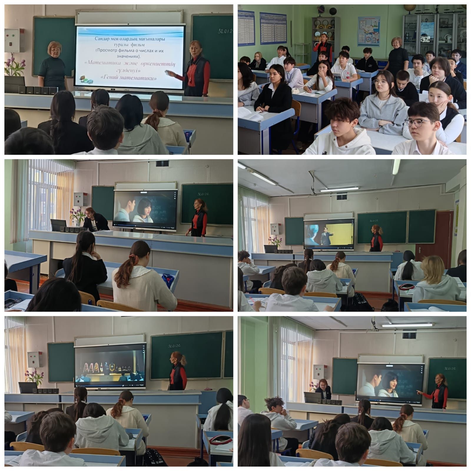 29 января в рамках недели математической грамотности «МАТЕМАТИКА ВОКРУГ НАС» 8"Ә" и 8"В" классы посмотрели фильм о числах и их значении «Математика және өркение…
