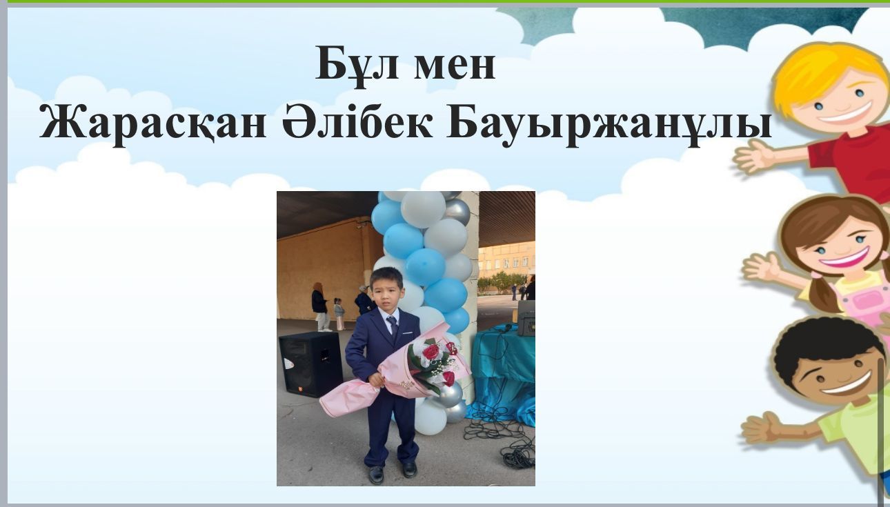 Ученик 1"Ә”класса Жарасқан Әлібек в рамках Дня семьи подготовил видеоролик "Я и моя семья".