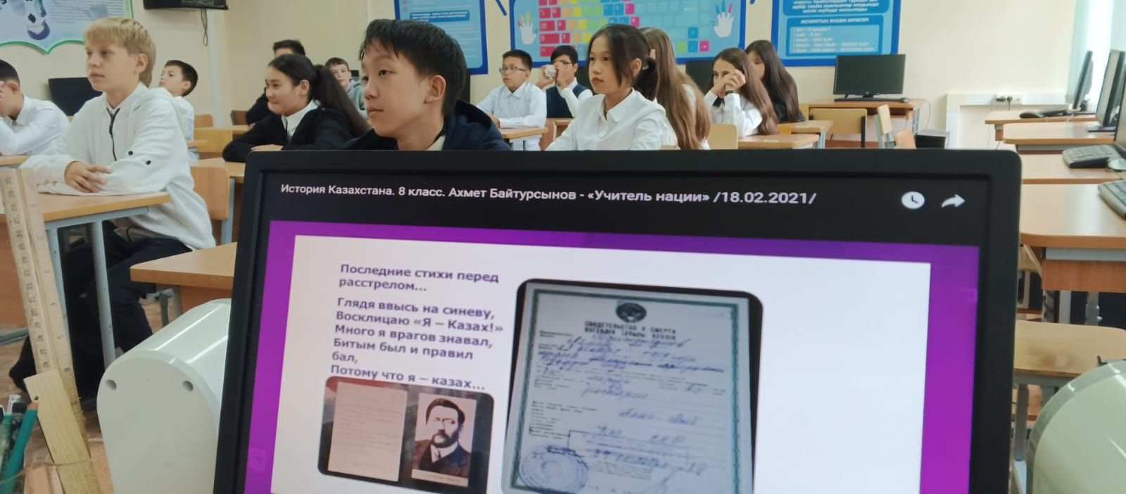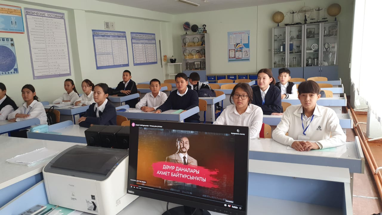 Сегодня в 7"Г" классе прошел тематический классный час, посвященный выдающемуся казахскому деятелю, просветителю и ученому А. Байтурсынову.