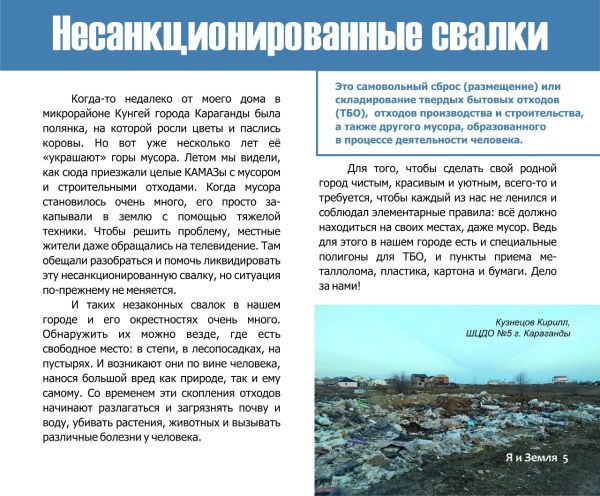 Статьи учащихся нашей школы вошли в новый выпуск молодежного экологического журнала "Я и Земля", который создается ОО «ЭкоОбраз» при поддержке АО «АрселорМиттал Темиртау&…