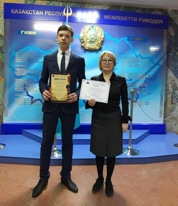 12 февраля 2019 году ученик 10 «А» класса занял І место в олимпиаде по предмету «География» среди учащихся 11-х классов г. Караганды и Карагандинской области.