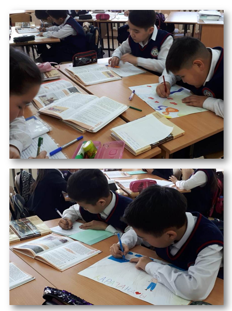 Қарағанды қаласының 85 – жылдық мерейтойына байланысты 5-ші сынып оқушылары Фарида Темірбаевнаның  жетекшілігімен  өлкетану сабағында топтық жұмыс жасап, өлкемізге байланысты постер…