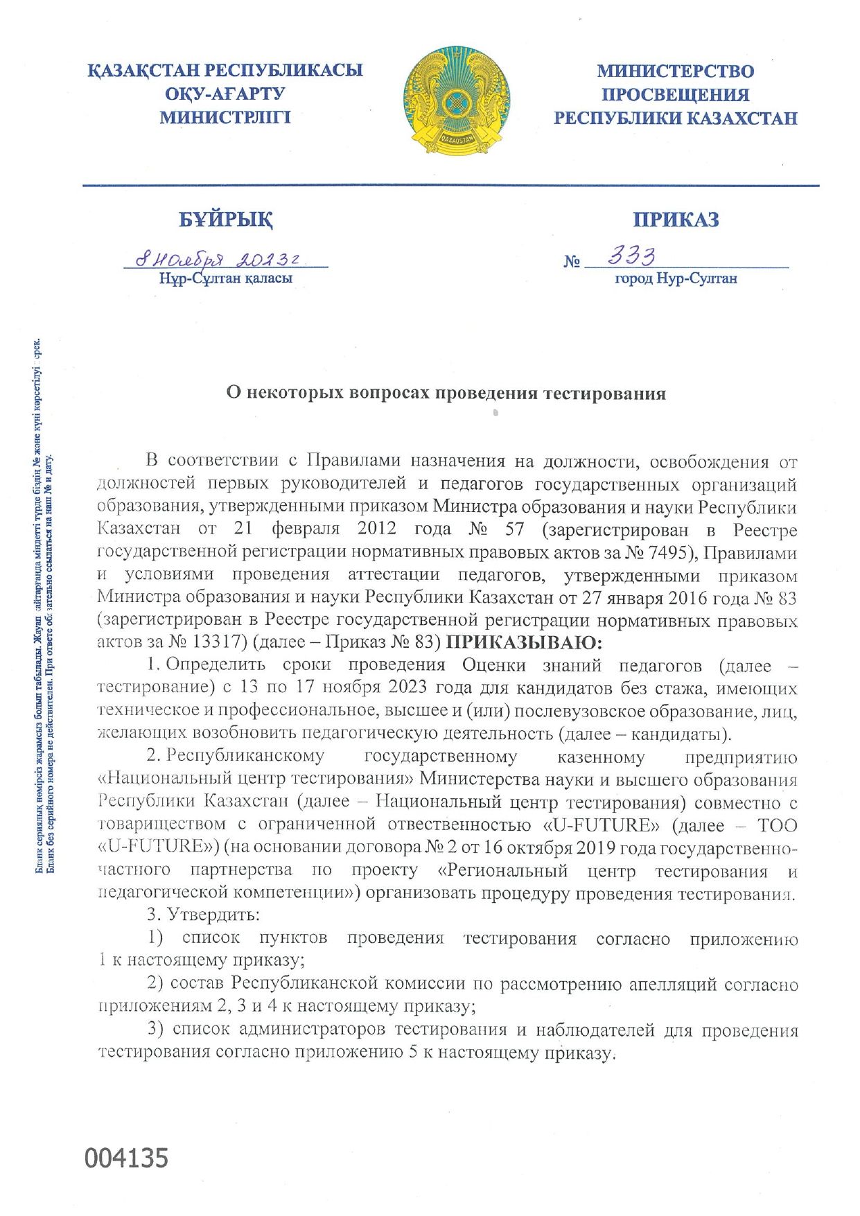 Тестілеу жүргізудің кейбір мәселелері туралы