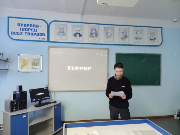 20.02.2023 жылы 8Б сыныбында «Терроризм - қоғамға қауіп» атты сынып сағаты өтті.
