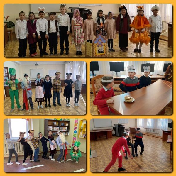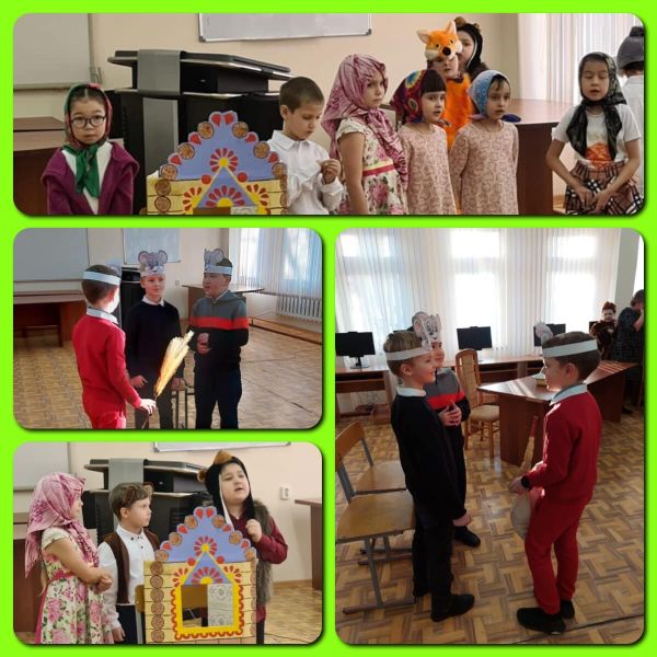 Бастауыш мектеп апталығының соңында оқушылар ертегілерді сахналады.