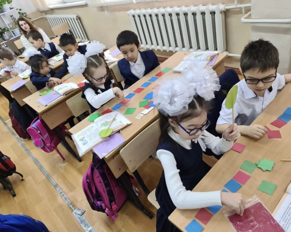 Бастауыш мектеп апталығы аясында 1"Б" сыныпта сауаттылыққа оқыту сабағы өтті. Сабақта оқушылар топтарда жұмыс жүргізді, өз өзара білімдерін, қолдауларын көрсете білді.