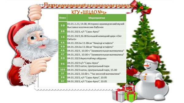 Қысқы демалысқа арналған іс-шаралар жоспары.