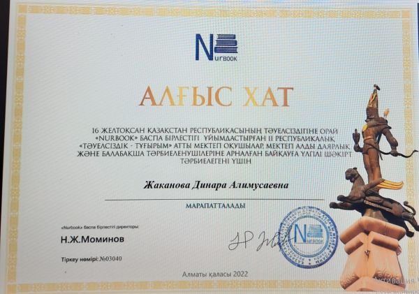 7В сынып оқушысы Хан Ариана мен 6Г сынып оқушысы Панькова Эмма Тәуелсіздік күніне арналған эссе байқауына қатысып, жүлделі 2 орынға ие болды.