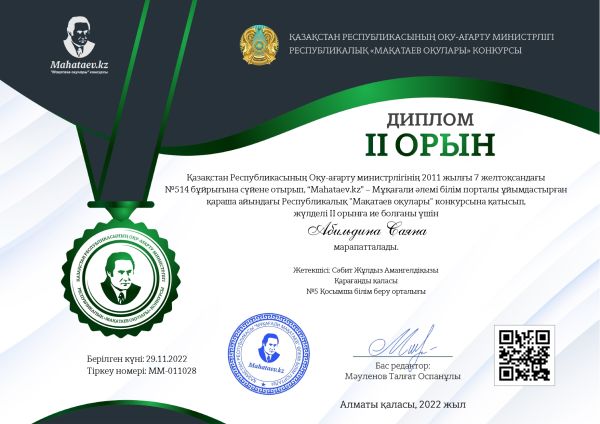 Республикалық “Мақатаев оқулары” конкурсының жеңімпаздары Абильдина Саяна және Қуандық Айару.