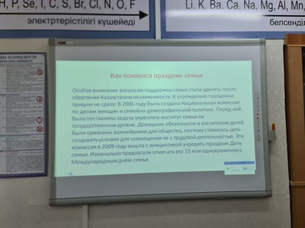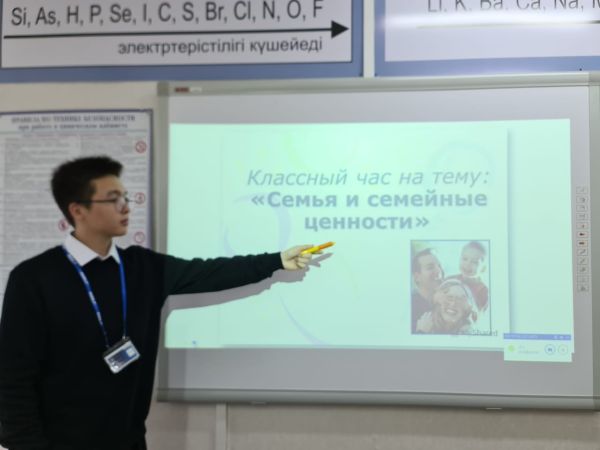 12 қыркүйекте 8"В" сыныбында «Отбасы құндылықтары» тақырыбынд ашық сынып сағаты өтті. Мухтарова Ясмин Қазақстандағы Отбасы күнінің тойлауы туралы қысқаша баяндап берді. Мобарец…