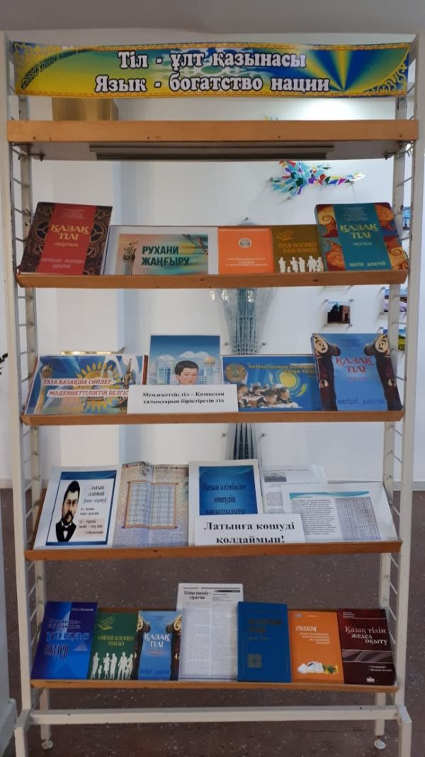 №5 ҚББМО-нің кітапханашылары оқырмандарына 5 қыркүйек - Қазақстан халқы тілдері күніне орай "Тіл - ұлт қазынасы" тақырыбында кітап көрмесін ұсынады.