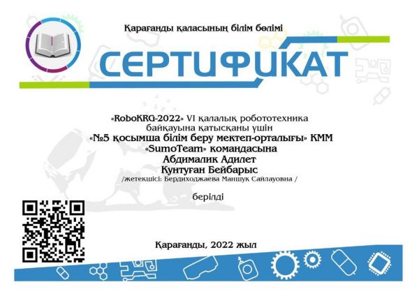 «RoboKRG» робототехника бойынша IV қалалық байқауына «№5 ҚББМО» КММ «SumoTeam» командасын…