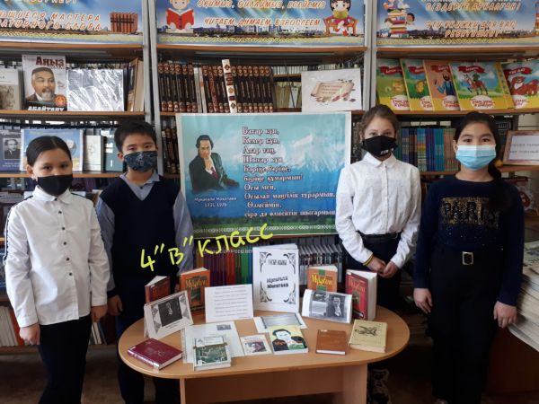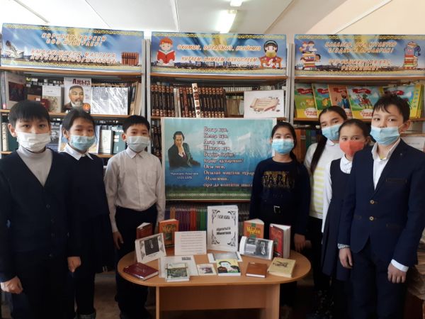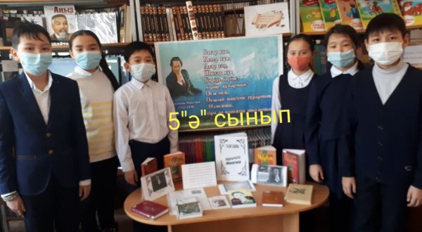 2022 жылдың 9 ақпанында №5 ҚББМО-ның кітапханашылары Ә.Т.Кәрімова, Г.О.Каппасова оқырмандарға Қазақстан Мемлекеттік сыйлығының лауреаты Мұқағали Мақатаевтың 91- жасқа толуына орай &laq…