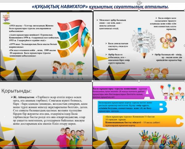 Қарағанды облысының білім беруді дамытудың оқу-әдістемелік орталығының ұйымдастыруымен 7 - 12 ақпан аралығында «ҚҰҚЫҚТЫҚ НАВИГАТОР» құқықтық сауаттылықты арттыру апталығы өткізілуде. Мек…