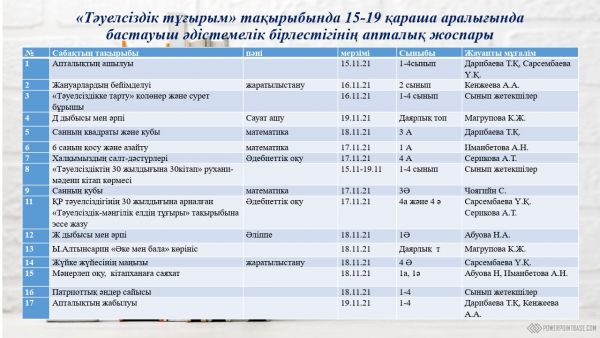 "Тәуелсіздік тұғырым" тақырыбында 15-19 қараша аралығында өткен ашық сабақтар: