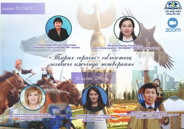 23.11.2021ж. Өтетін облыстық семинарда ZOOM платформасында мектебіміздің тарих пәні мұғалімі Масанова Фарида Темирбаевна шебер-сынып…