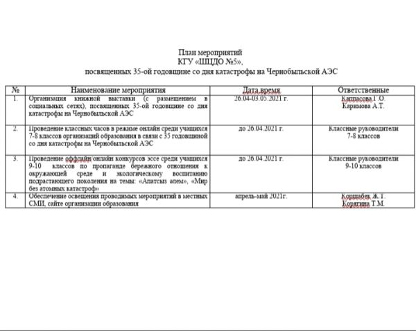 «№5 қосымша білім беру мектеп орталығы» 2021 жылдың 08 сәуірден 08 мамыр аралығында бұқаралық – қорғаныс жұмыстарының айлық жоспары