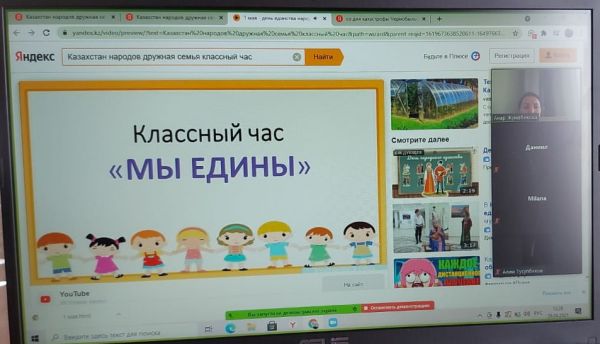 30.04.21ж. 1 мамыр —Қазақстан халықтарының бірлігі күніне орай 8В сыныбында сынып сағаты өтті. Сынып жетекші Жумабекова А. Н.