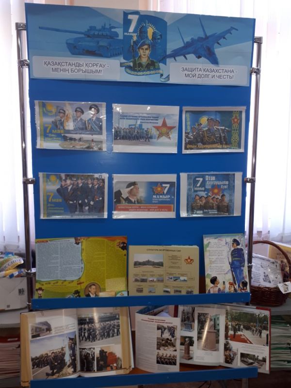 N 5 қосымша білім беру мектеп -орталығы кітапханасында 7 мамыр Отан қорғаушылар күніне арналған "Қазақстанды қорғау менің борышым! " кітап көрмесі ұйымдастырылды.
