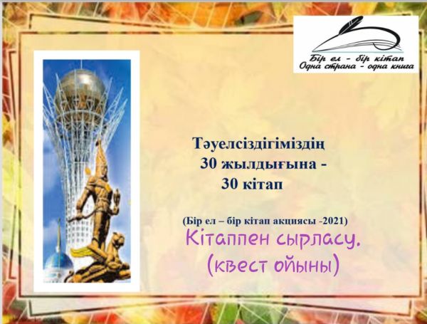 Кітаппен сырласу. 2021 жылдың 22 сәуір күні "Бір ел - бір кітап" республикалық, " Тәуелсіздігіміздің 30 жылдығына - 30 кітап" рухани - мәдени акциялары аясында "N5ҚББМО"…