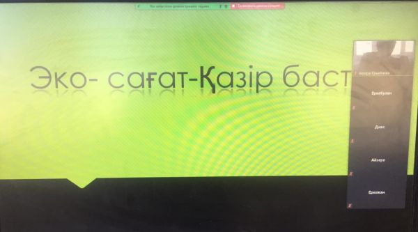 "Жасыл Қазақстан" экологиялық сауаттылық апталығы аясында 9"а" сынып оқушыларымен "Эко-сағат - Қазірден баста!" атты сынып сағаты өтті. Сынып жетекшісі: Бейсем…