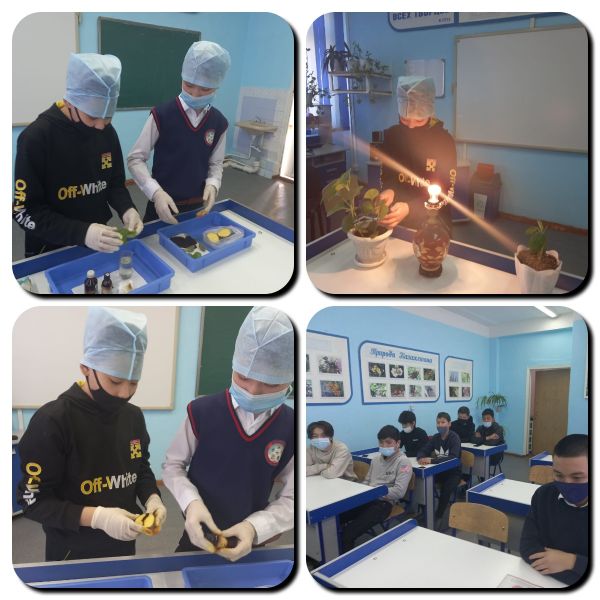 13.04.21 ж күні "Ғылым, техника, табиғат" атты жаратылыстану ғылыми сауаттылық апталығы аясында 9а сынып оқушылары флораға байланысты әртүрлі тәжірибелер жүргізді.
