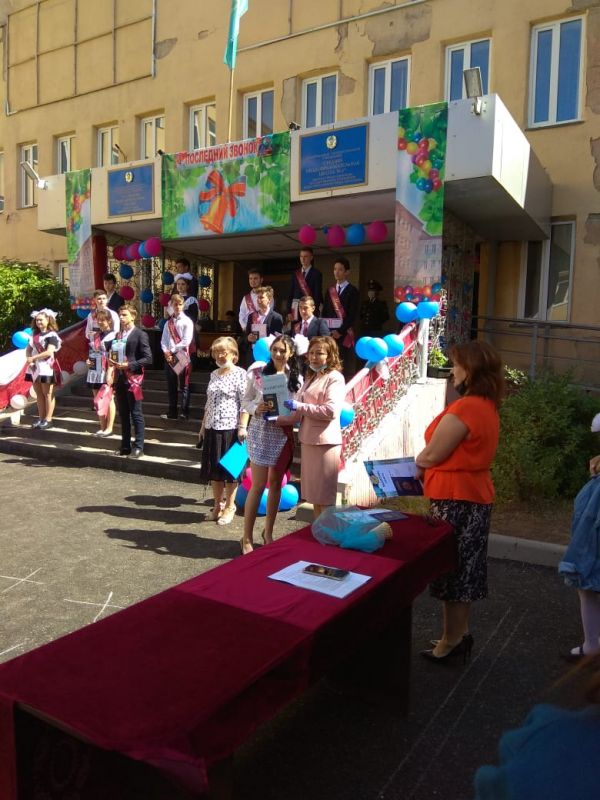 Мектеппен қоштасу және аттестаттарды №5 ЖББОМ КММ мектеп түлектеріне тапсыру рәсімі