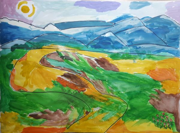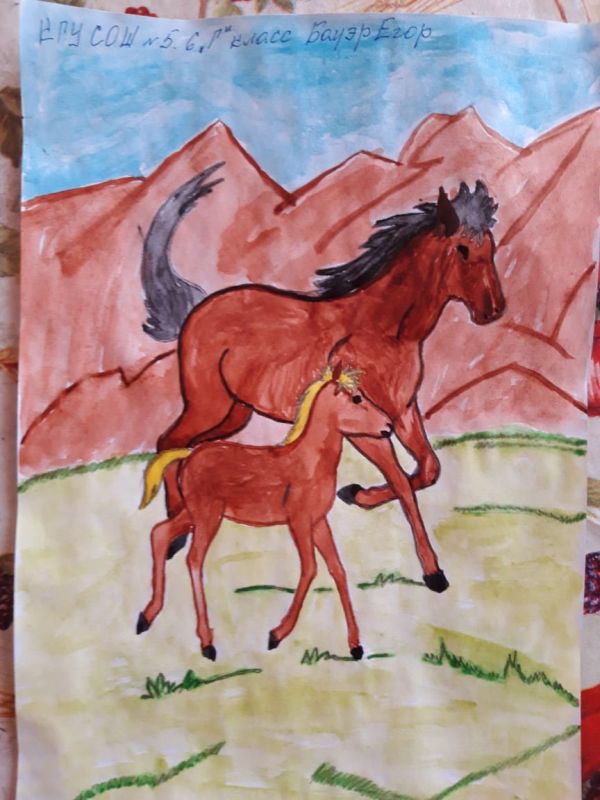 «Туған жер» тақырыбына суреттер салғандар: 1 Б сынып – Ломов Денис, 2 Б сынып – Араканцев Михаил, 6 Г сынып - Жапарова Ясмин.
