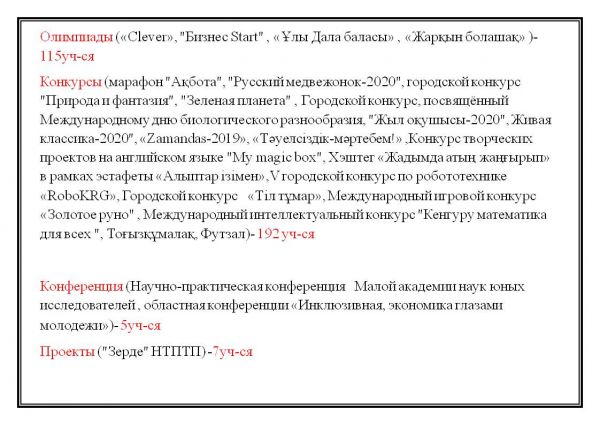 2019-2020 оқу жылындағы оқушылардың жетістіктері.