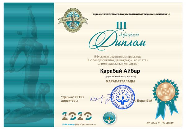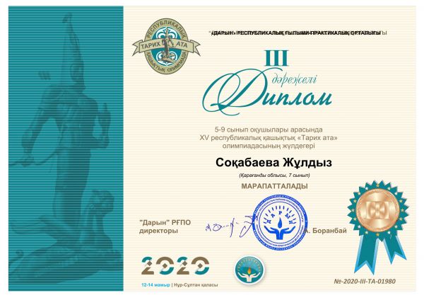 XV Республикалық «Тарих ата»олимпиадасына мектебіміздің 5-9 сынып оқушылары қатысып өздерінің білімдерін көрсете білді. «Туған өлке тарихы» үйірмесіне қатыс…