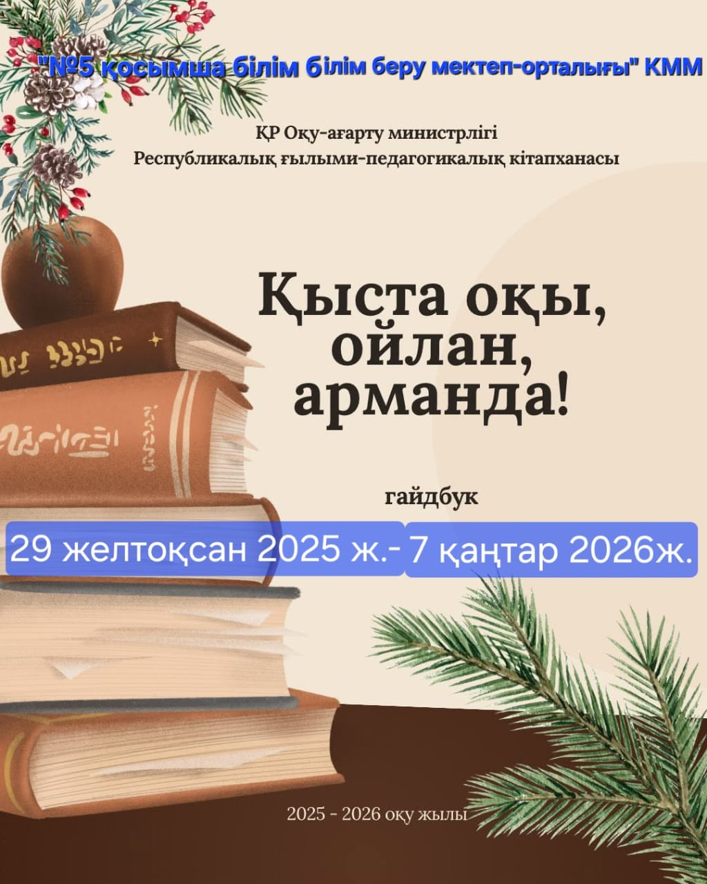 Балалардың бос уақытын тиімді әрі мазмұнды ұйымдастыру мақсатында Республикалық ғылыми-педагогикалық кітапхана «Кітап оқы, ойлан, арманда» атты қысқы демалысқа арналған гайдбук ұсынады.…