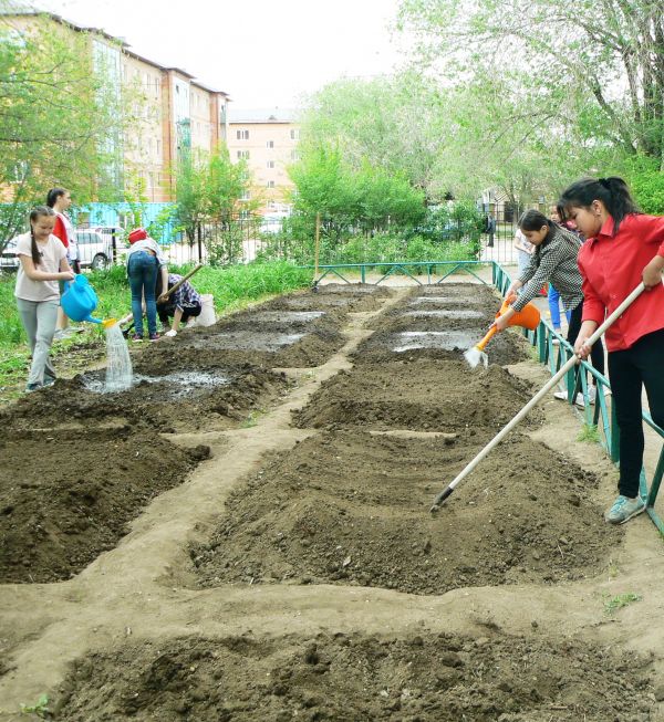 Жаз мезгілінде оқушылар мектепті көгалдандыруға белсенді қатысып жүр