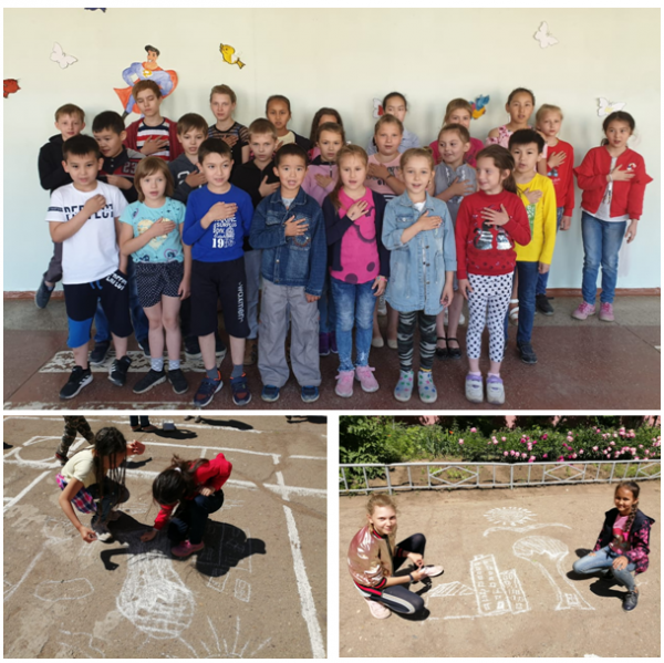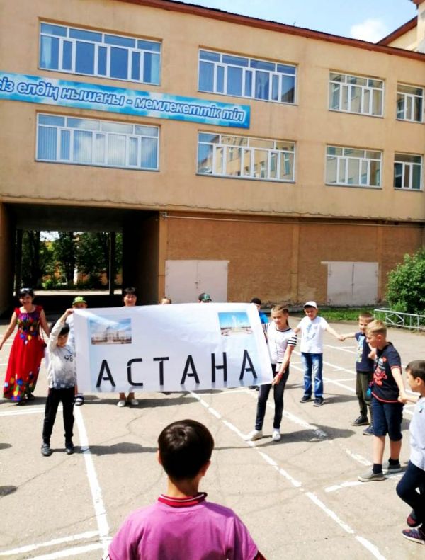 24 маусым күні мектеп жанындағы лагерьдің күні Астана күніне арналған жиыннан басталды. Балалар ҚР әнұранын айтып, Астана туралы әңгімелесті, сосын асфальтқа сурет салды. Содан кейін балалар «…