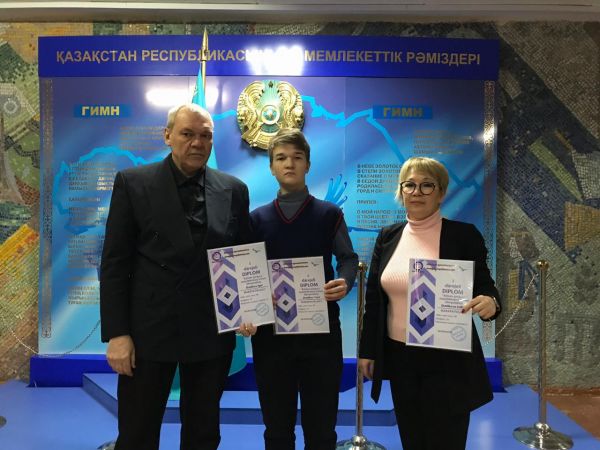 "Рухани жаңғыру" республикалық онлайн олимпиадасының дипломанттары (І дәрежелі дипломдар) 9 "Б" сынып оқушысы Жарликов Юрий, география мұғалімі Жарликова З. М., тарих мұғалімі Жа…
