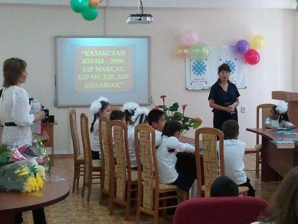 3 “А” сыныбында ата-аналардың және мекетеп ұжымының қатысуымен “Қазақстан – 2050: Бір мақсат, бір мүдде, бір болашақ” тақырыбында ашық тәрбие сағаты өтті.