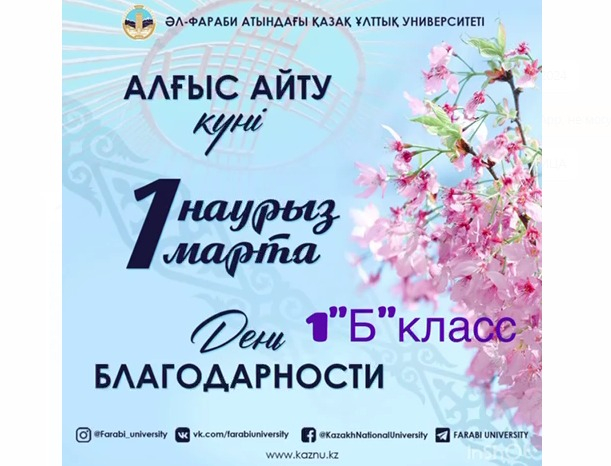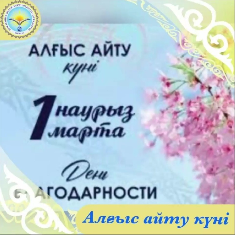 Көктемнің алғашқы күнімен келіп, көңіл тыныштығын сыйлайтын жарқын мереке - Алғыс айту күні құтты болсын! Алғыс айту - жүрекке жылу сыйлайтын керемет қасиет, қарапайым адамгершілік парыз. Алғыс айта…