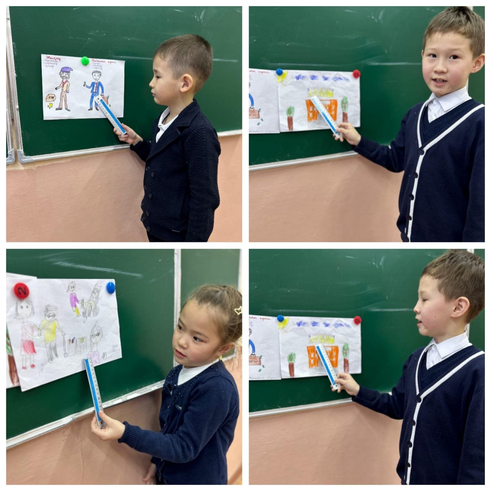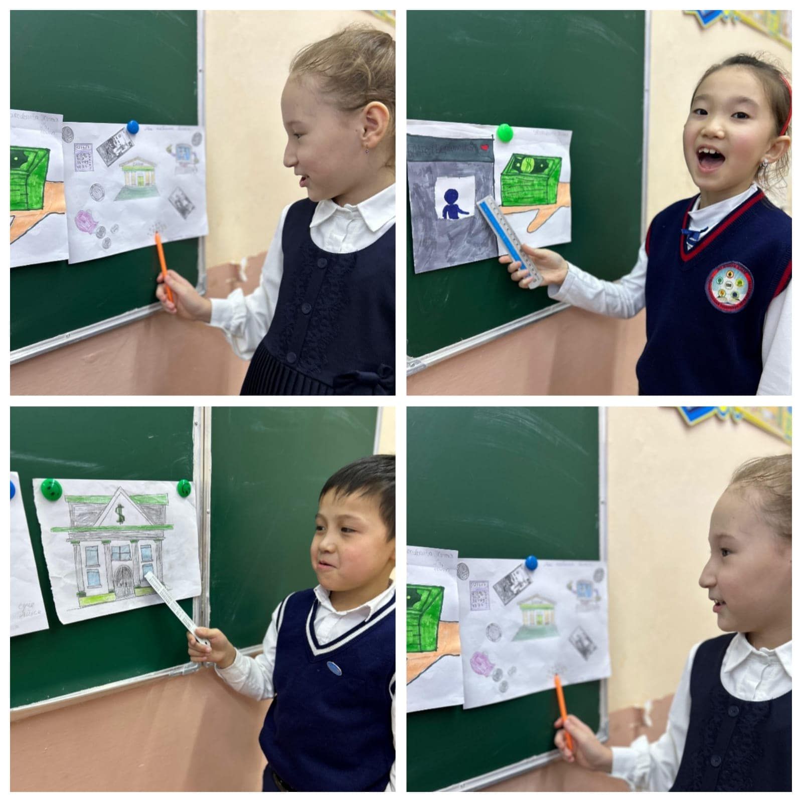 2"А" сыныбында "Тұтынушы мен сатушының қарым-қатынасы, бизнесті, банктерді, қаржыны дамыту мәселелері" бойынша әңгімелер өткізілді. Соңында оқушылар сурет салып, өз ойларын ауызш…