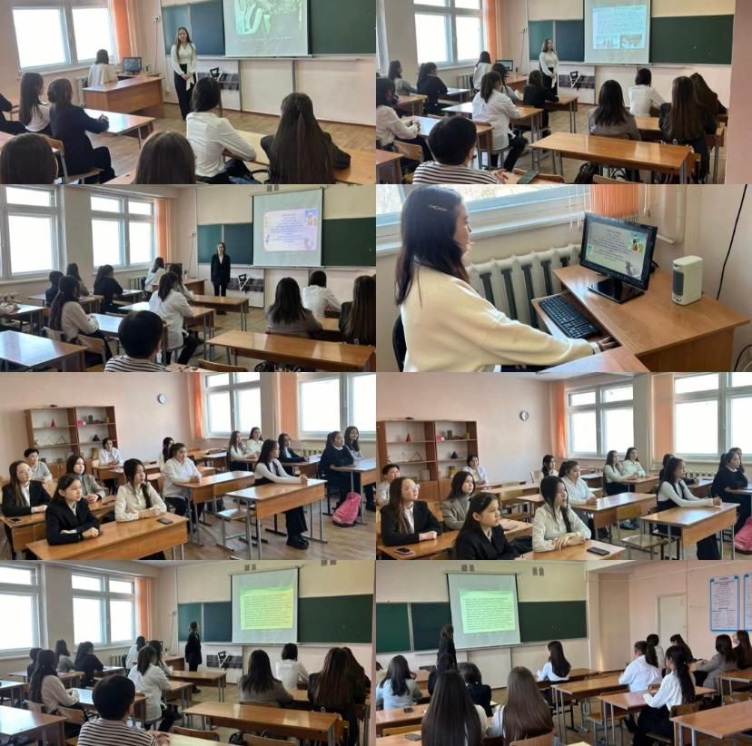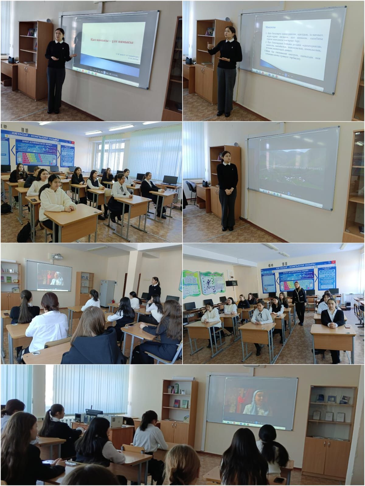 15.01.2024 күні 10”A”, 10”Ә” сыныптарында «XXI ғасыр - сауатты ұрпақ ғасыры!» Оқу сауаттылығы апталығы аясында “Қыз намысы - ұлт намысы” тақырыбында с…
