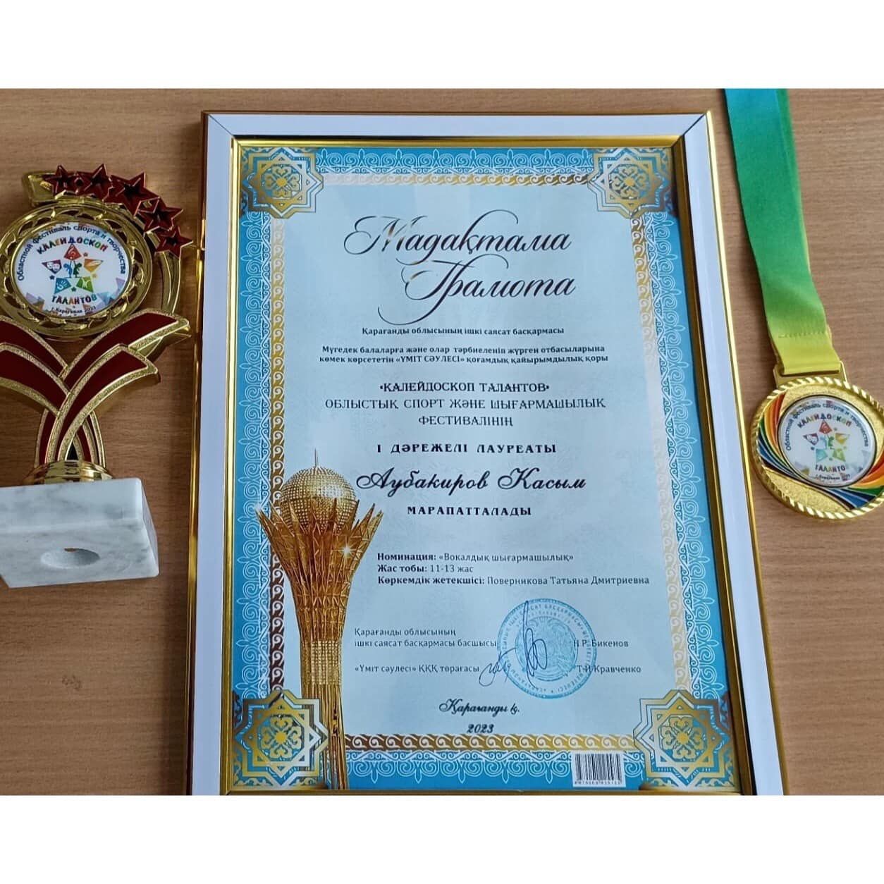 Қазақстан Республикасы күніне орай облыстық "Таланттар калейдоскопы" фестивалі өткізілді, 3"В" сынып оқушысы Әубәкіров Қасым Отан туралы әнмен 1-орынға ие болды.