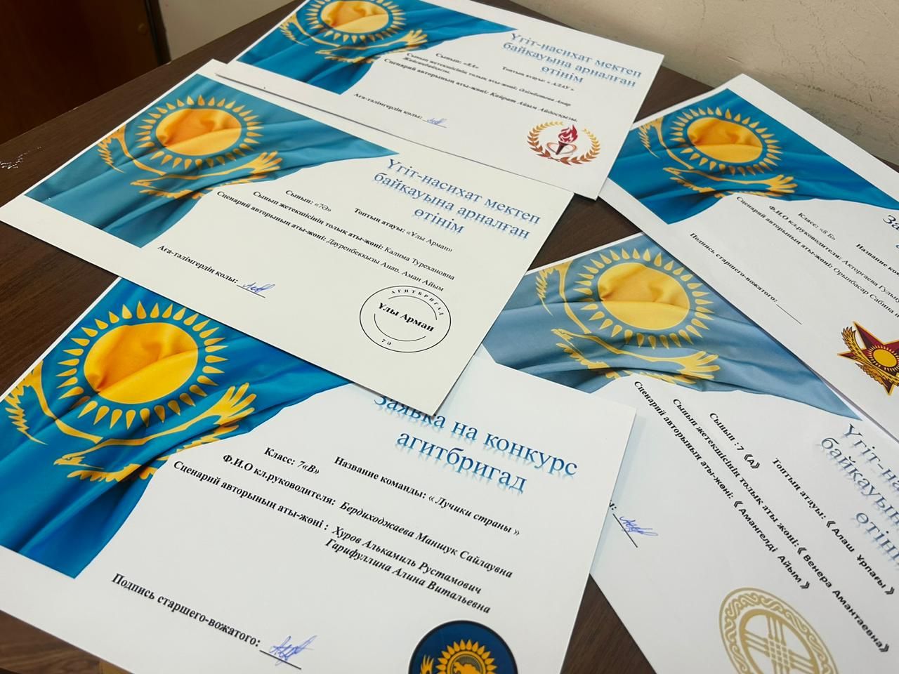 7-сынып оқушылары арасында "Менің арманымдағы Қазақстан" ("Казахстан моей мечты") ЭССЕ байқауында жүлделі орындарға ие болды: