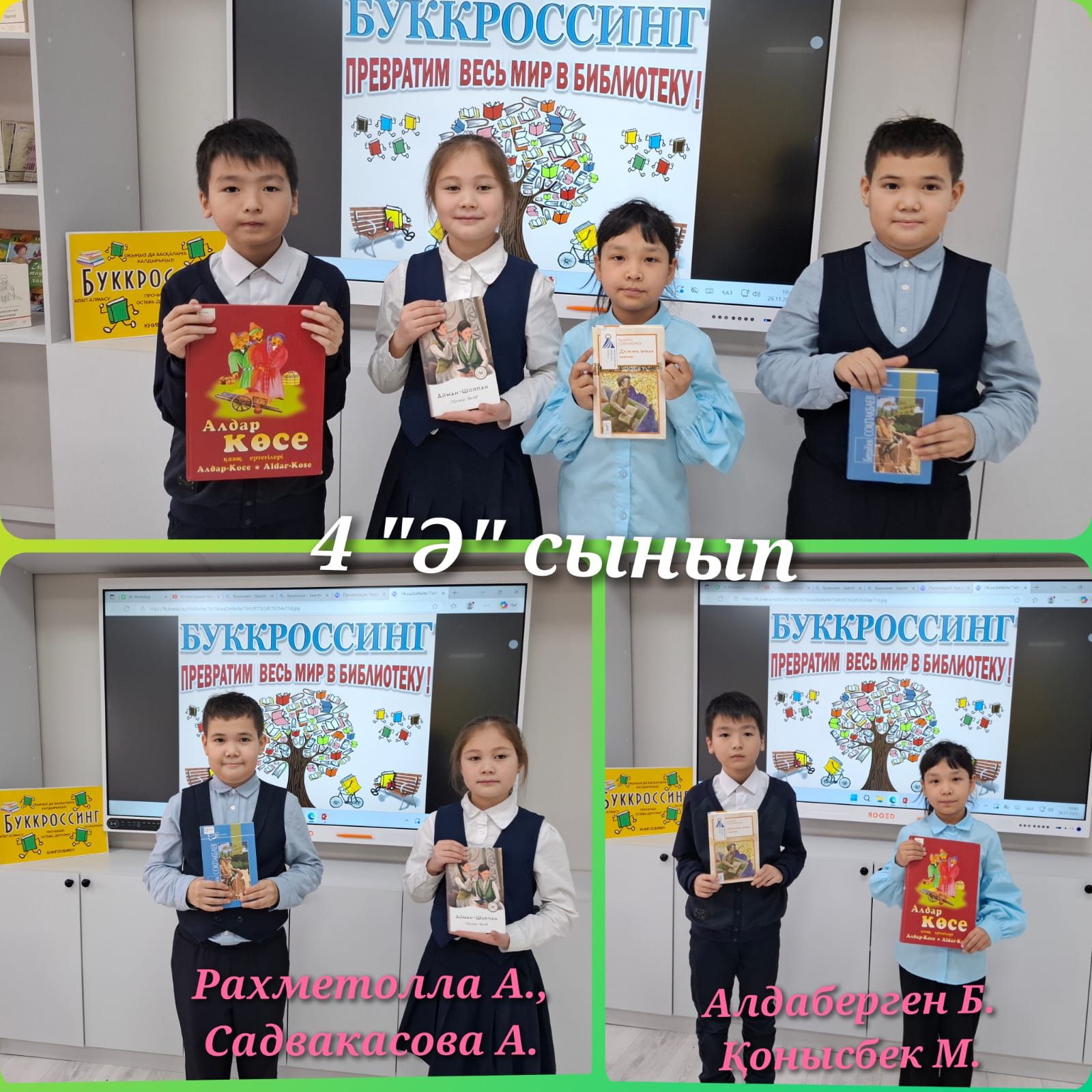 2025 жылдың 26 қарашасында кітапханашылар ұйымдастырған мектеп кітапханасында 4«Ә» сыныбының оқушылары Садвакасова Айша, Рахметолла Альтаир, Алдаберген Бекасыл, Қонысбек Мөлдір «Bo…